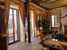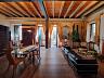 • Amplo sala de estar com cozinha integrada, traves expostas e lareira, perfeita para momentos em família e com amigos.