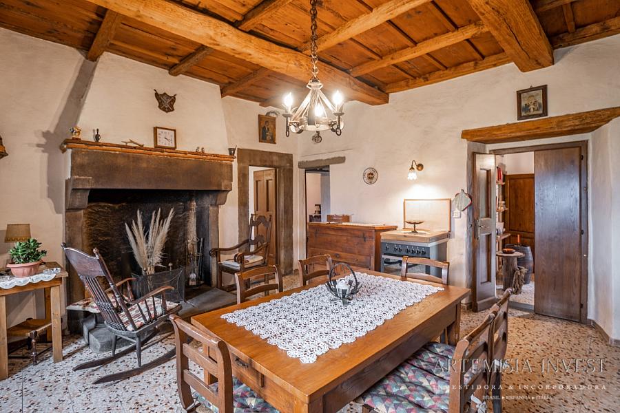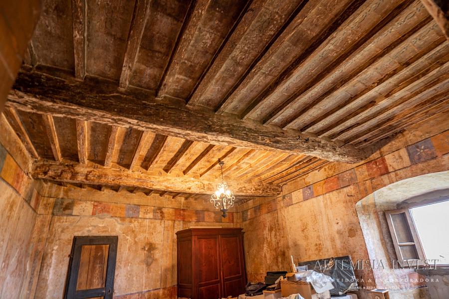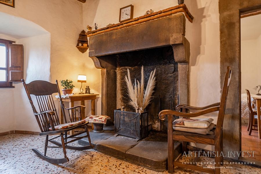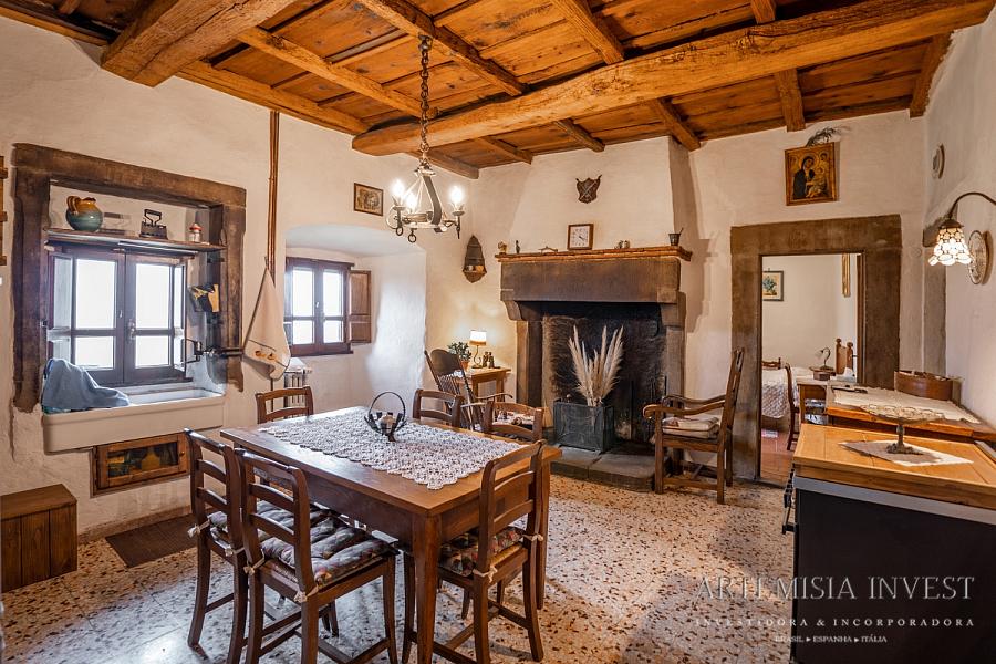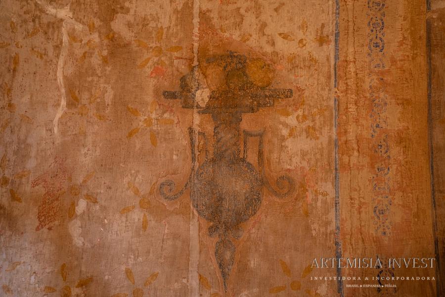 • Cuidadosamente restaurada nos anos 1990, a propriedade encontra-se em excelente estado, preservando o charme rústico original, como a lareira de pedra e os afrescos históricos, que foram estabilizados para evitar a perda de detalhes.