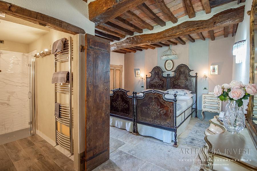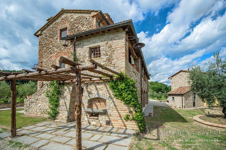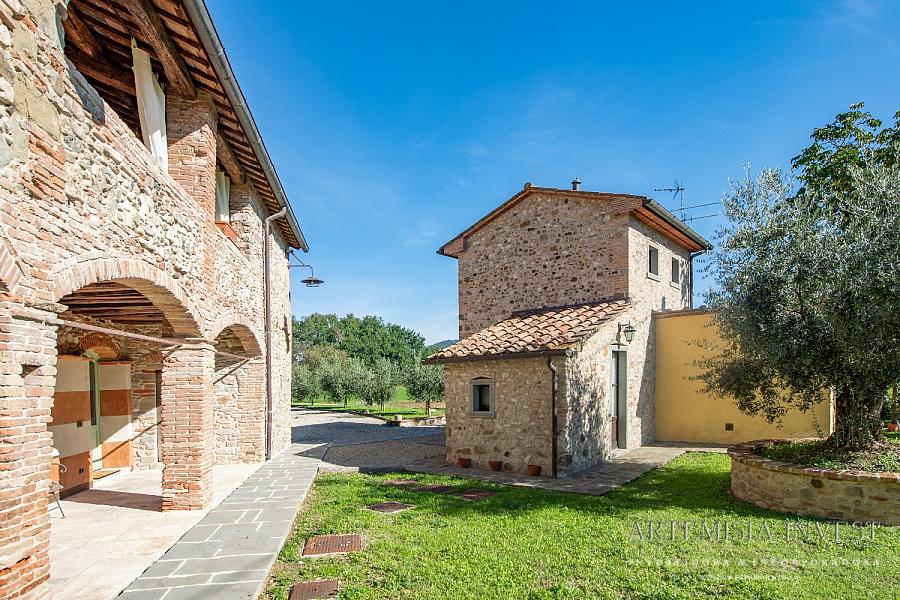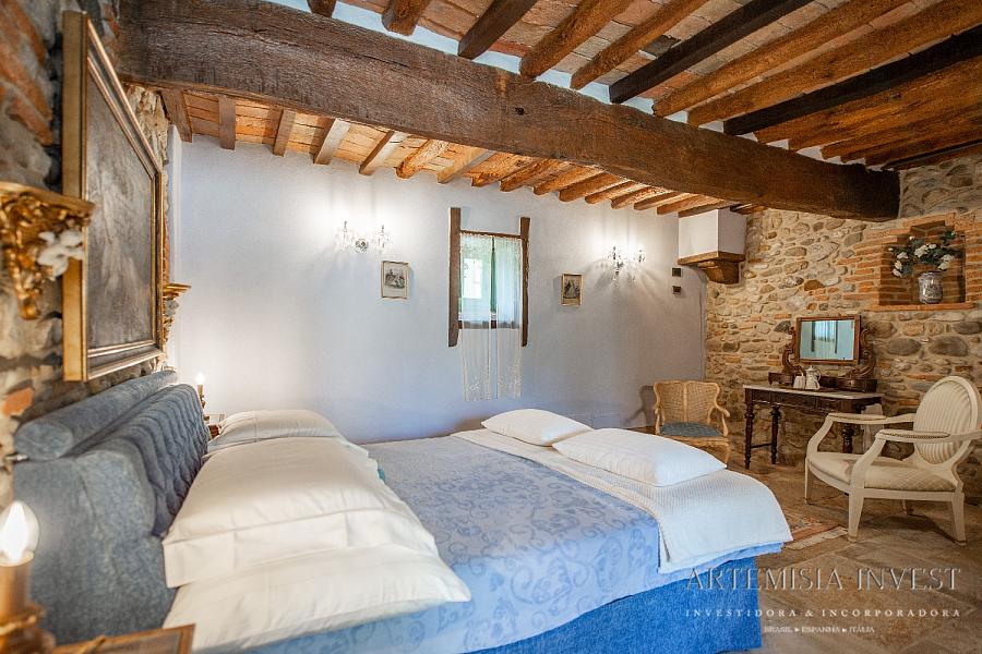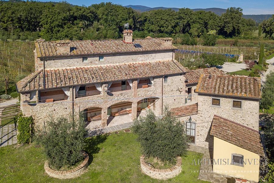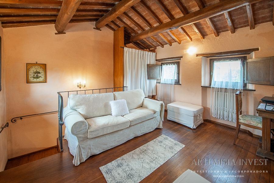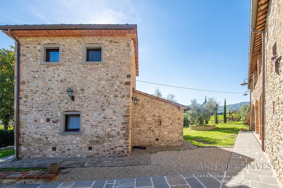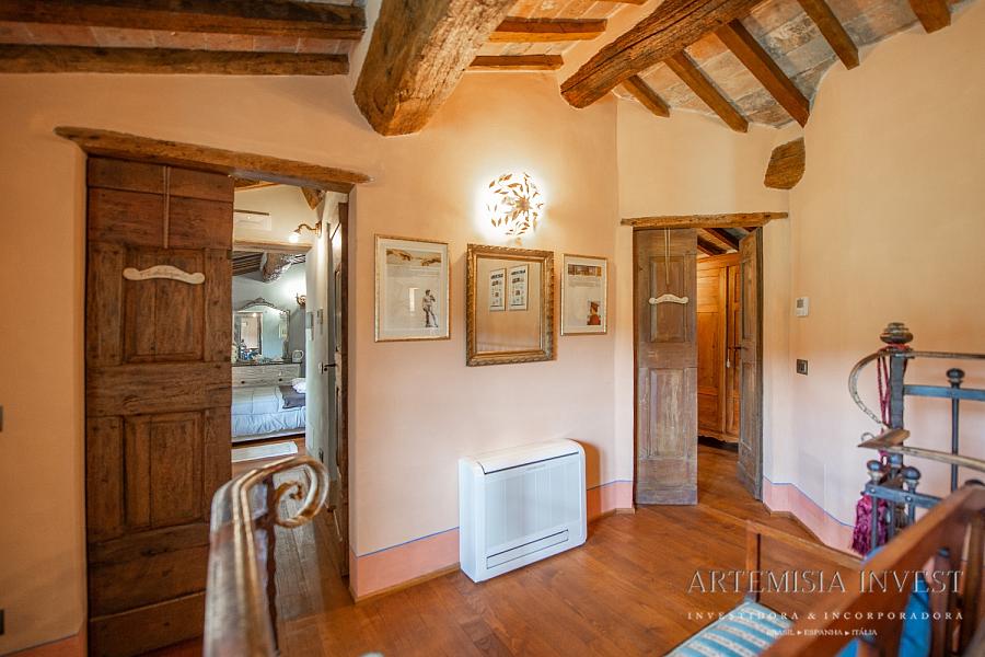 • Este belíssimo casale, finamente restaurado com métodos conservativos, está localizado a poucos minutos do vilarejo medieval de Anghiari, em uma área tranquila e de fácil acesso. A propriedade principal possui 305 m² distribuídos em três andares e conta com 5 quartos e 6 banheiros. Além disso, o antigo celeiro (43 m²) foi transformado em uma charmosa dependência com 2 quartos.