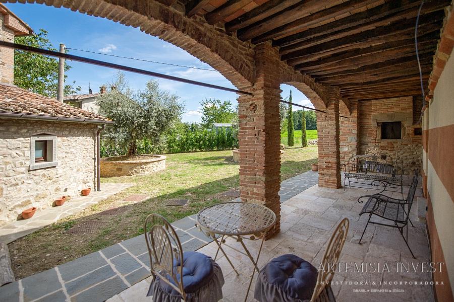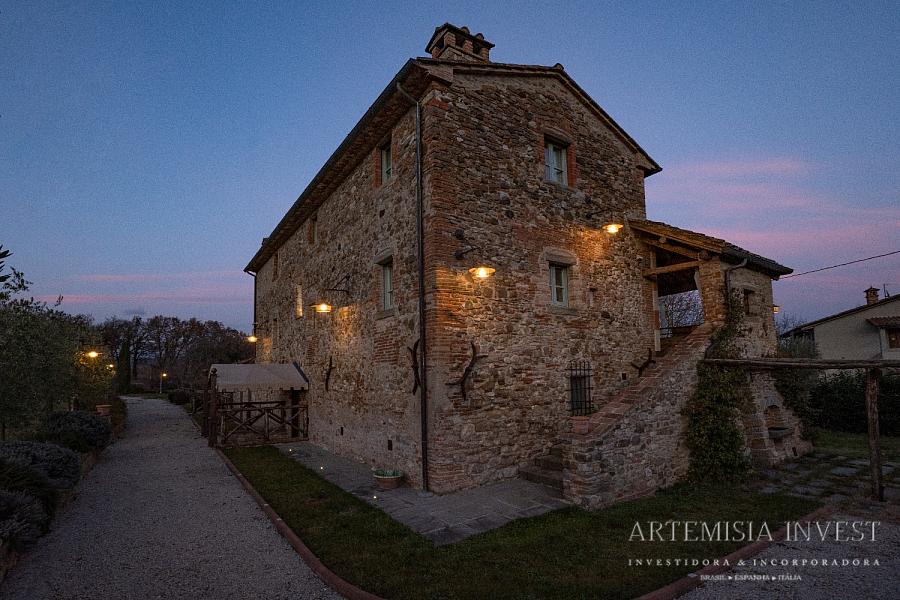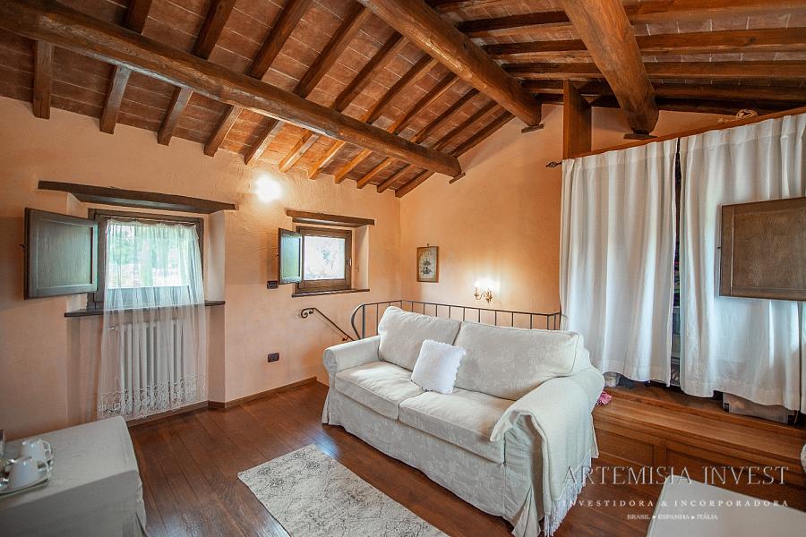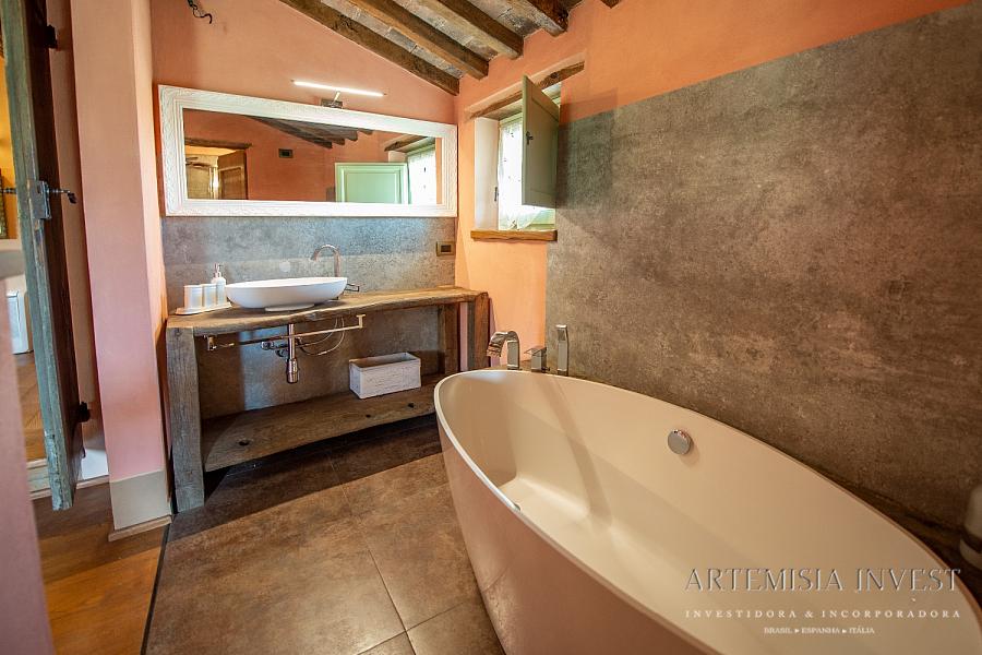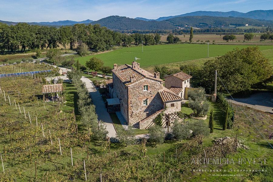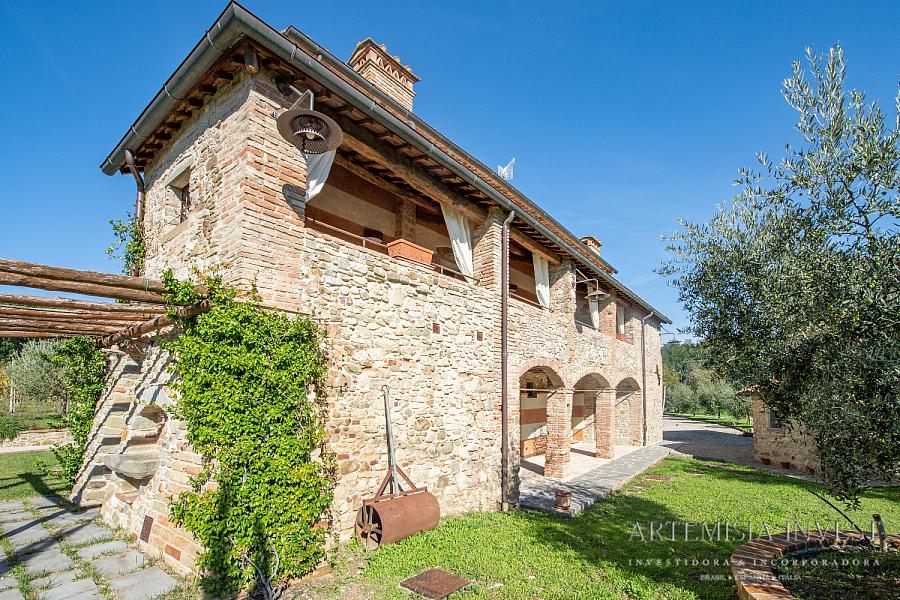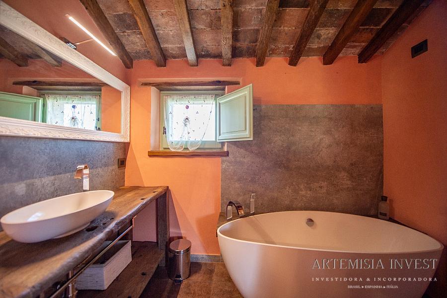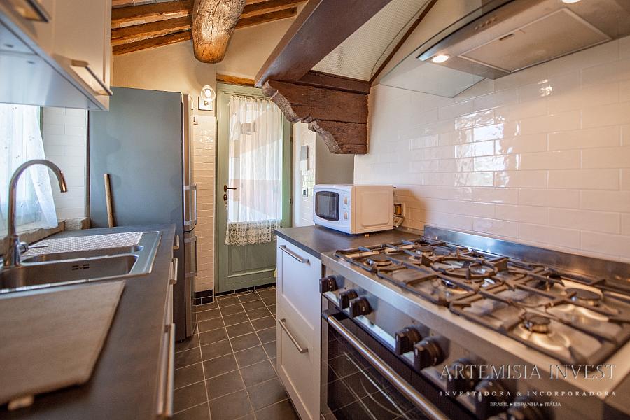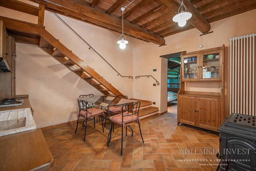 • Este belíssimo casale, finamente restaurado com métodos conservativos, está localizado a poucos minutos do vilarejo medieval de Anghiari, em uma área tranquila e de fácil acesso. A propriedade principal possui 305 m² distribuídos em três andares e conta com 5 quartos e 6 banheiros. Além disso, o antigo celeiro (43 m²) foi transformado em uma charmosa dependência com 2 quartos.