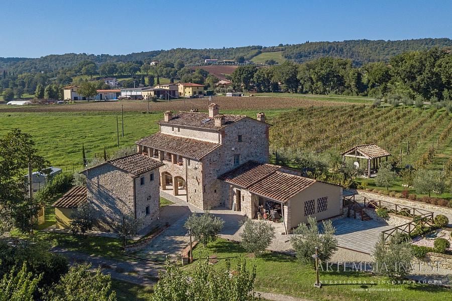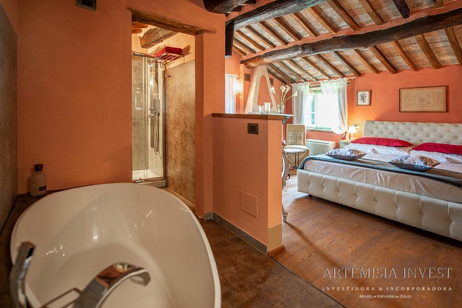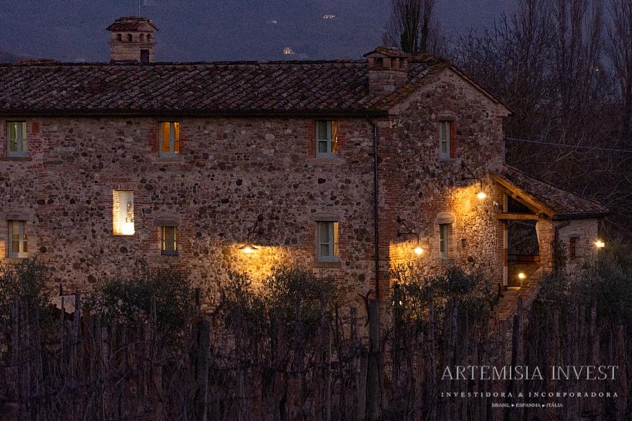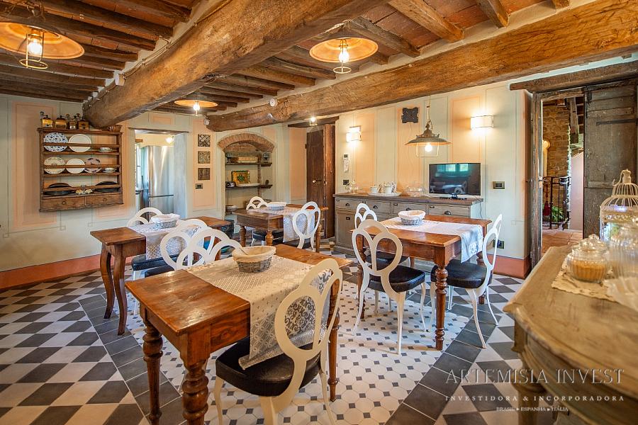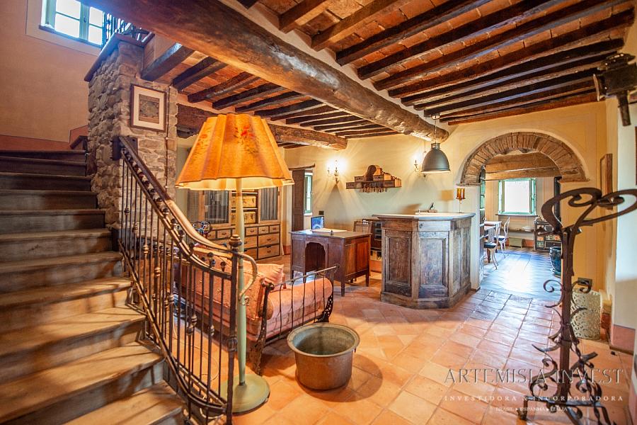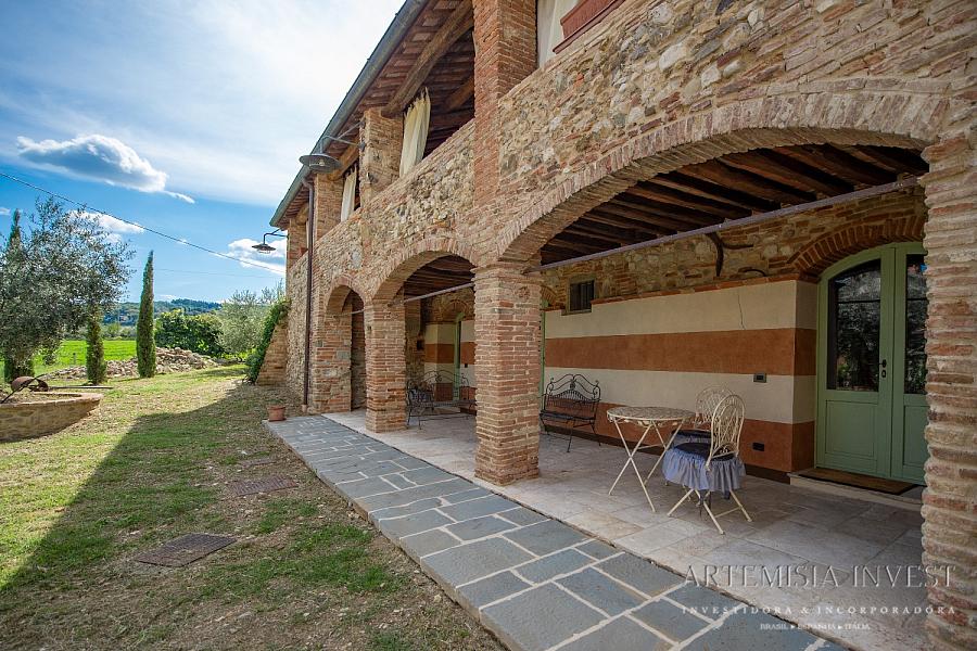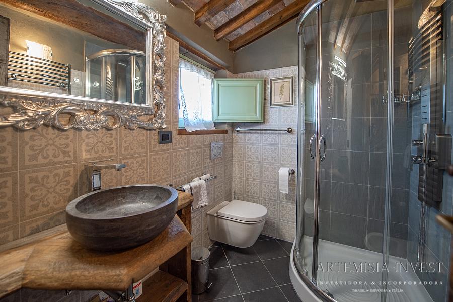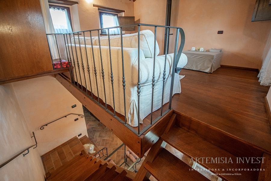 • Este belíssimo casale, finamente restaurado com métodos conservativos, está localizado a poucos minutos do vilarejo medieval de Anghiari, em uma área tranquila e de fácil acesso. A propriedade principal possui 305 m² distribuídos em três andares e conta com 5 quartos e 6 banheiros. Além disso, o antigo celeiro (43 m²) foi transformado em uma charmosa dependência com 2 quartos.