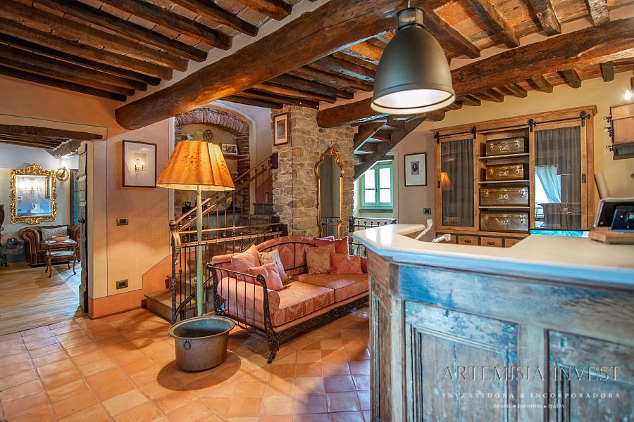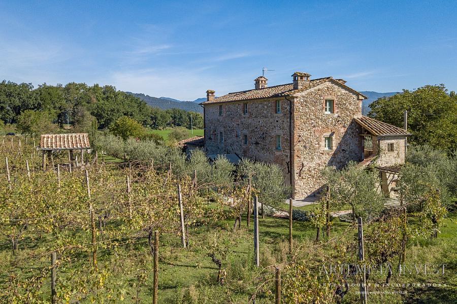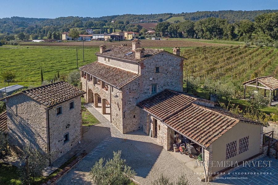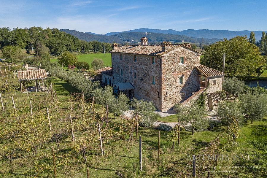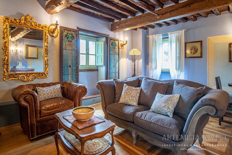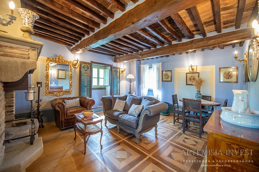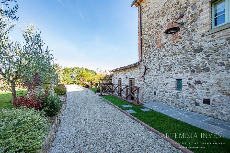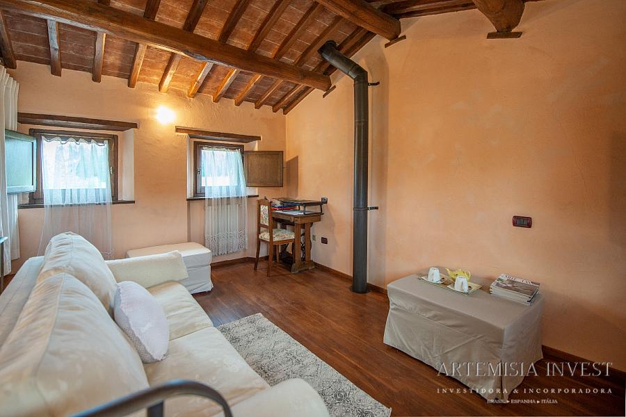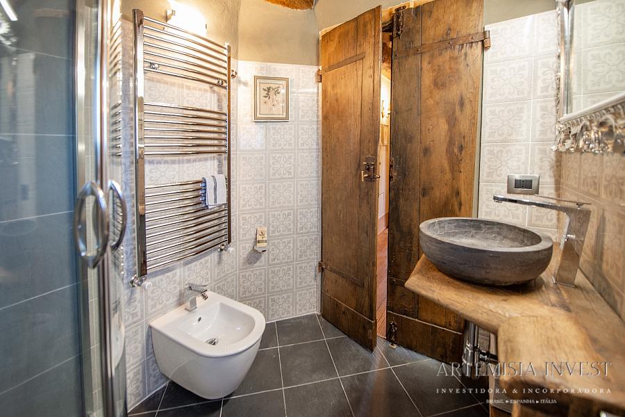 • Este belíssimo casale, finamente restaurado com métodos conservativos, está localizado a poucos minutos do vilarejo medieval de Anghiari, em uma área tranquila e de fácil acesso. A propriedade principal possui 305 m² distribuídos em três andares e conta com 5 quartos e 6 banheiros. Além disso, o antigo celeiro (43 m²) foi transformado em uma charmosa dependência com 2 quartos.