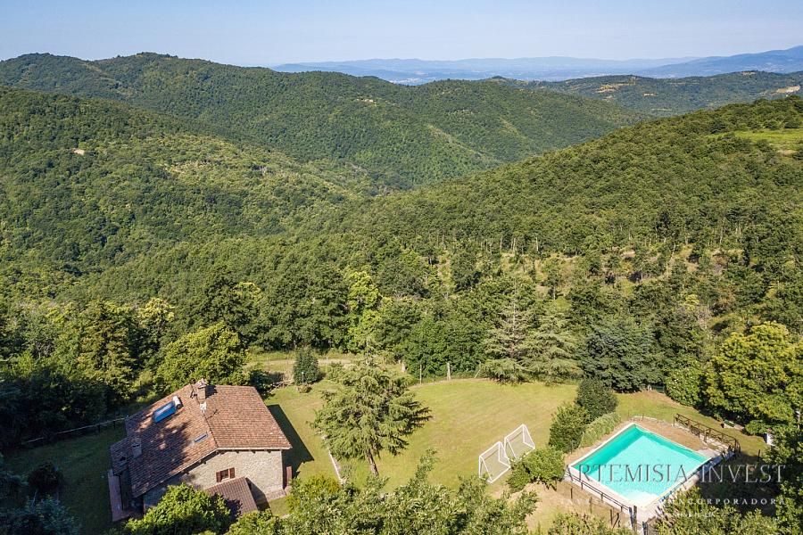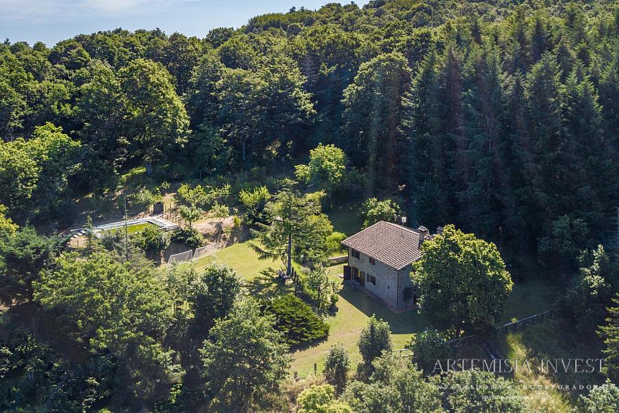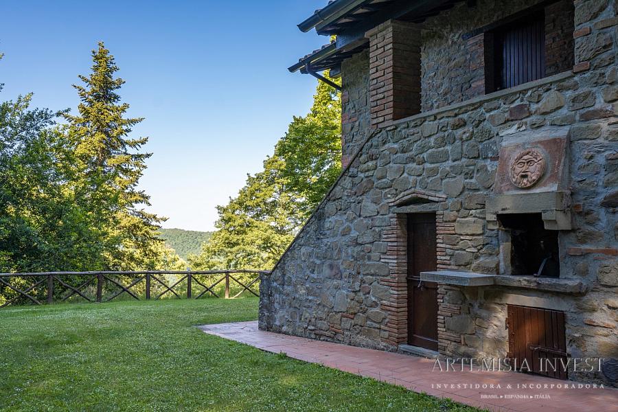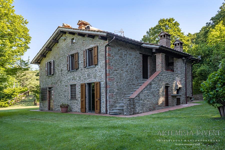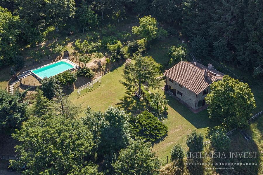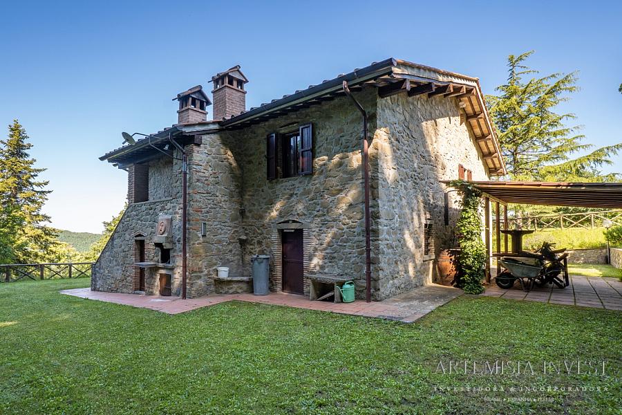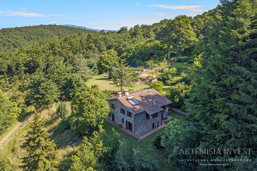 Nas colinas da província de Arezzo, em uma localização muito tranquila com vista para a paisagem ao redor, está à venda uma casa de campo em pedra com piscina e terreno cercado. O imóvel, em excelente estado de conservação, conta com 4 quartos e 3 banheiros, além de um parque cercado de 19.000 m² com piscina.