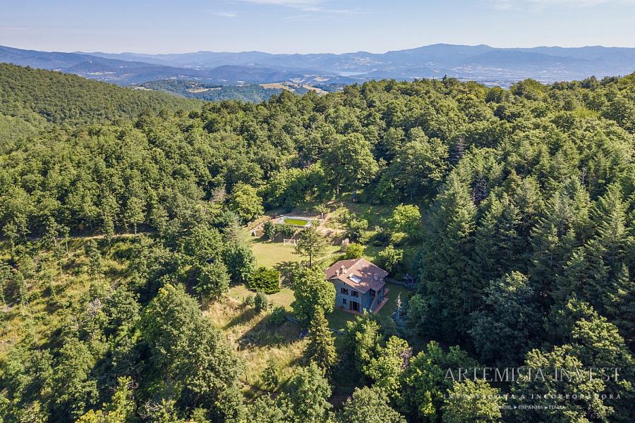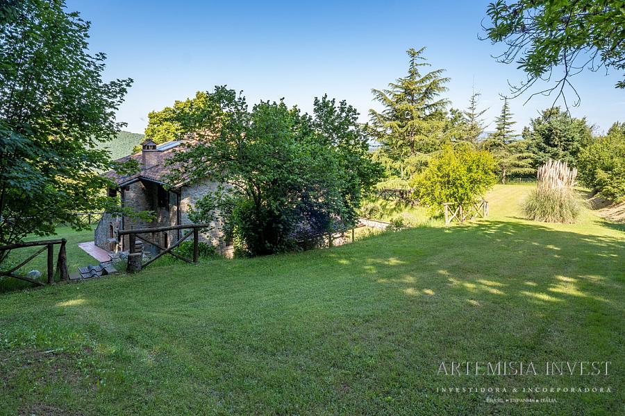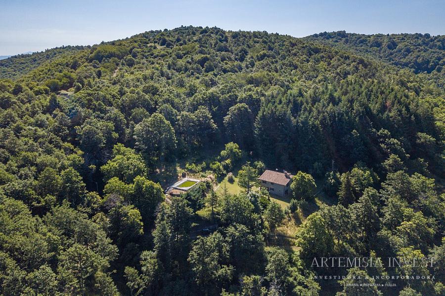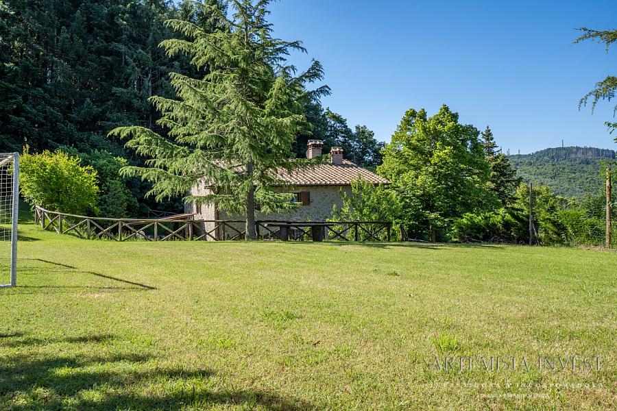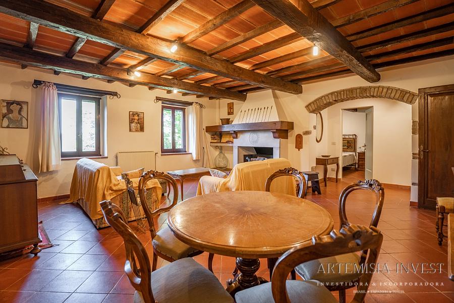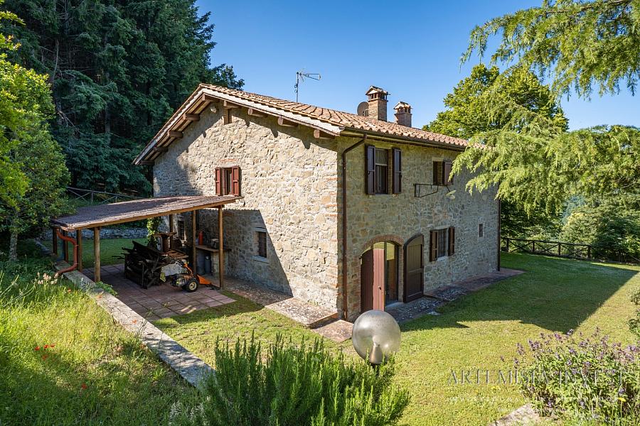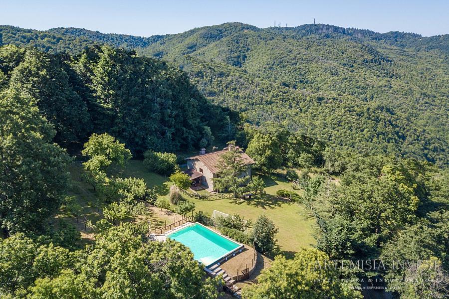 Nas colinas da província de Arezzo, em uma localização muito tranquila com vista para a paisagem ao redor, está à venda uma casa de campo em pedra com piscina e terreno cercado. O imóvel, em excelente estado de conservação, conta com 4 quartos e 3 banheiros, além de um parque cercado de 19.000 m² com piscina.