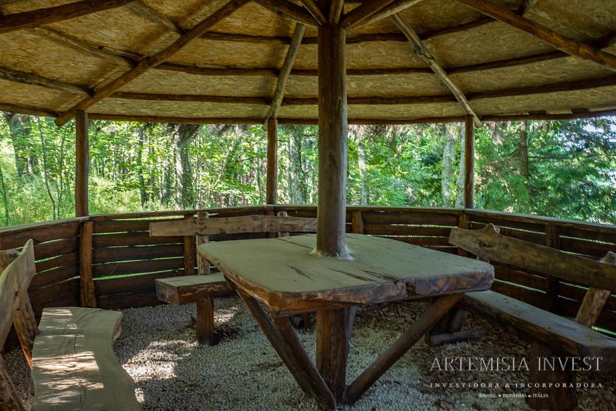 O imóvel está cercado por aproximadamente 1,9 hectares (4,7 acres) de terreno, totalmente cercado e amplamente coberto por árvores, garantindo excelente privacidade e tranquilidade.