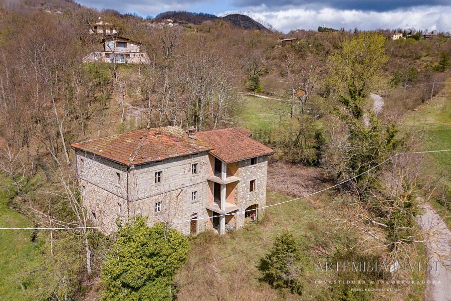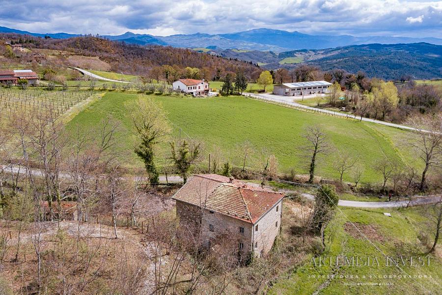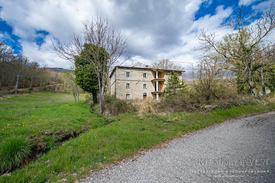 No município de Caprese Michelangelo, em uma localização panorâmica e privilegiada nas colinas, este casarão de 387 m² com dependência está disponível para reforma. A propriedade é composta por um casarão de pedra, uma extensão em concreto armado e um armazém, oferecendo amplo espaço para a criação de três apartamentos confortáveis ou uma residência particular. O terreno de aproximadamente 1.500 m² ao redor do edifício é ideal para a criação de um jardim privativo.