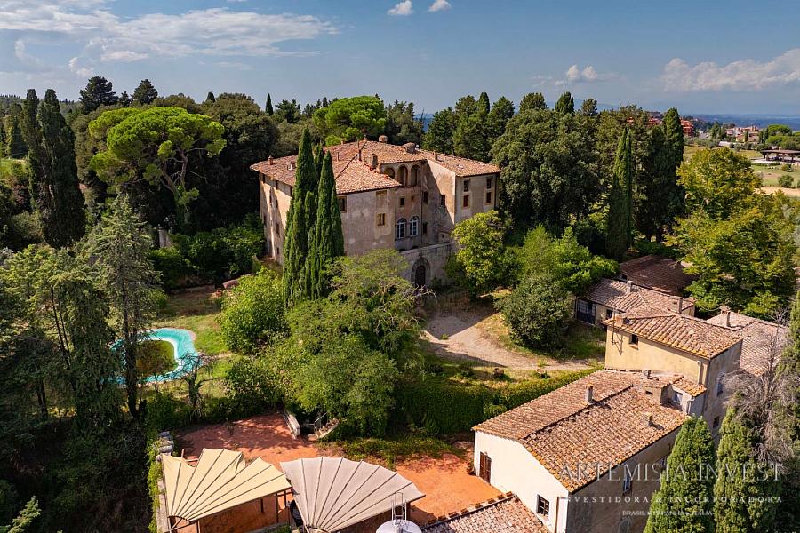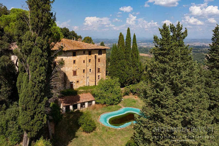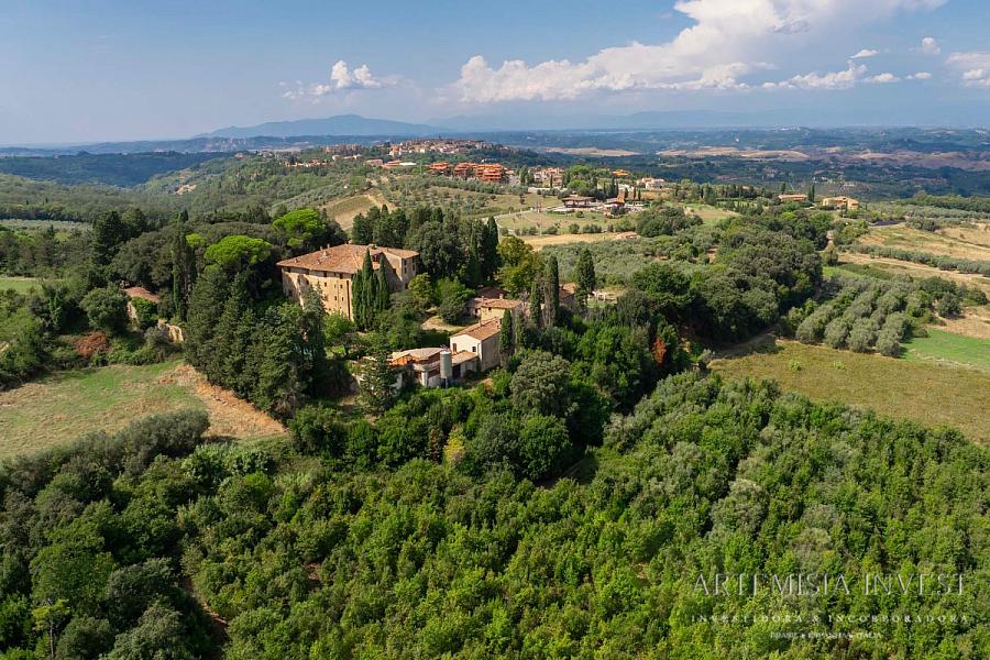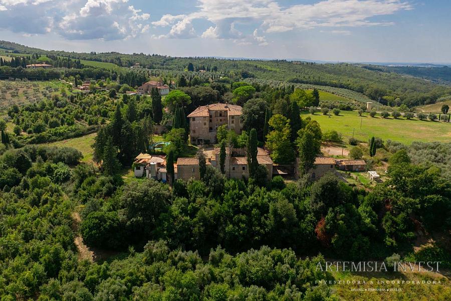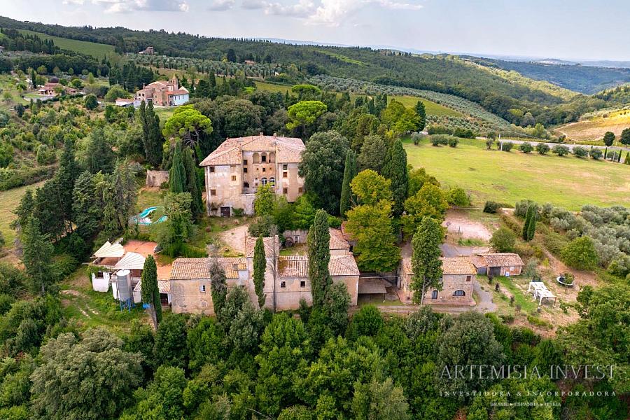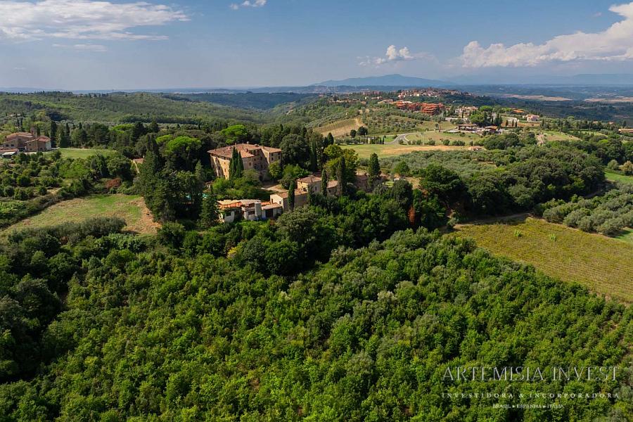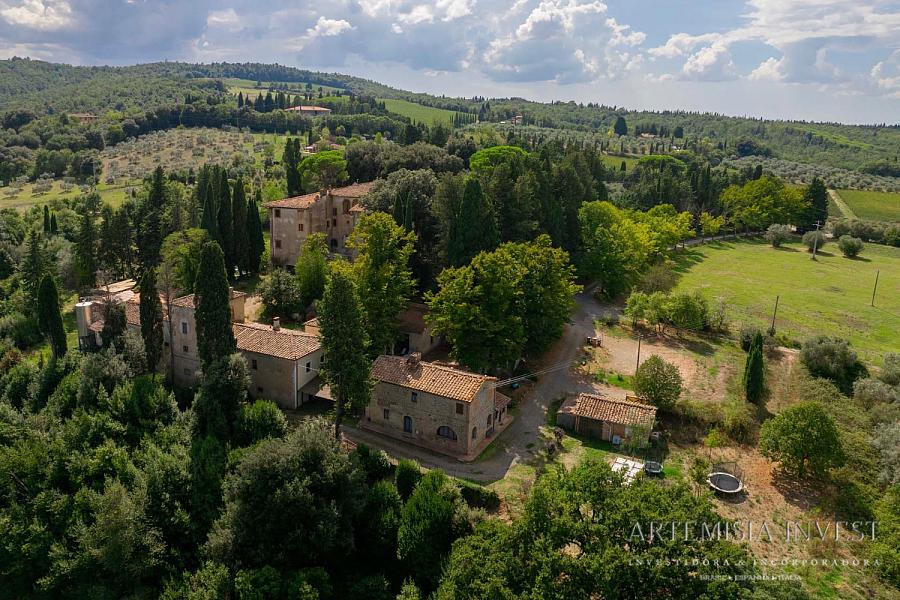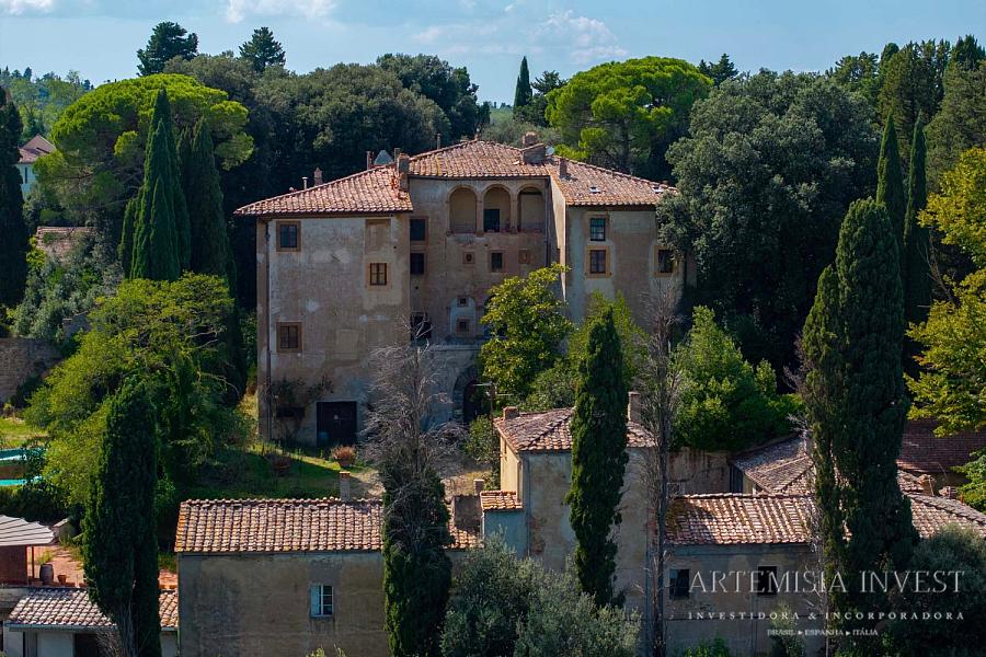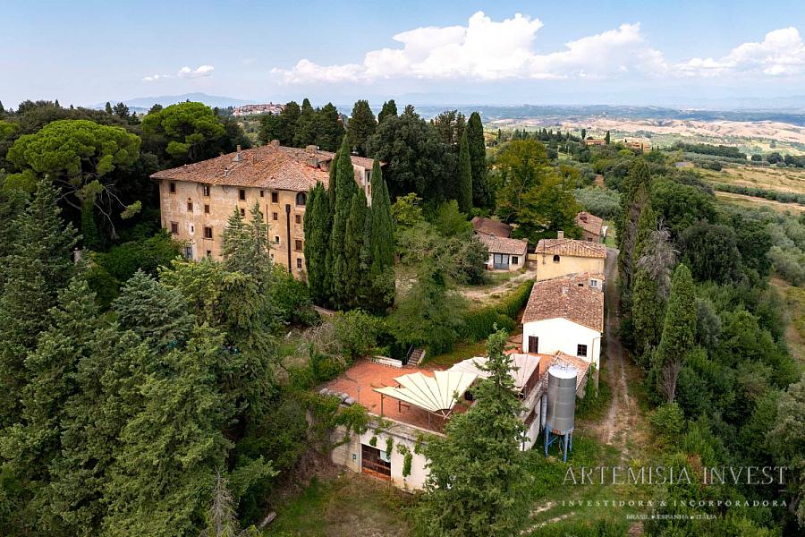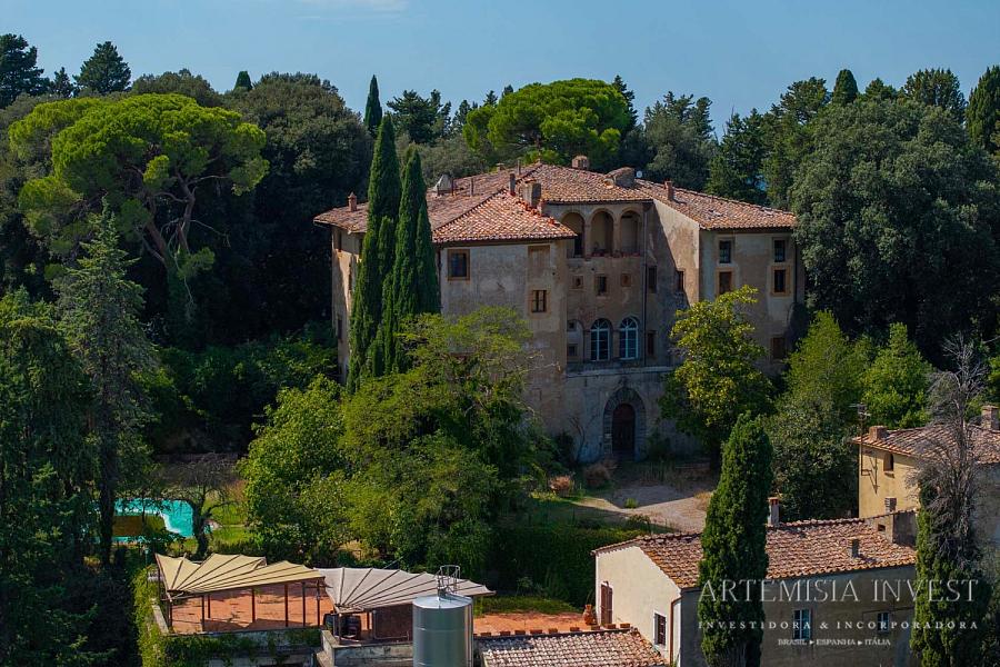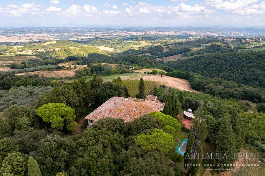 No coração da Toscana, em uma posição panorâmica e reservada, mas a menos de 2 km de uma vila medieval com todos os serviços, encontra-se esta prestigiada propriedade com uma vila histórica, adegas, vinhedo e olival.