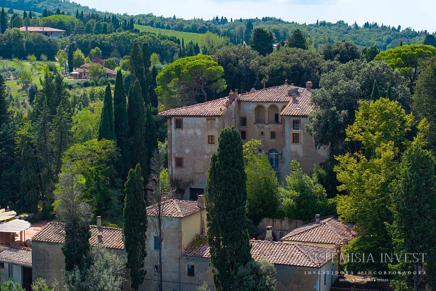 A propriedade se estende por uma área total de aproximadamente 7,1 hectares, incluindo um jardim de 8.700 m², terreno cultivável (3,8 hectares), um olival com cerca de 200 oliveiras (1,6 ha) e um vinhedo Chianti DOCG (8.000 m²).
