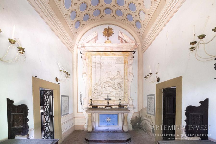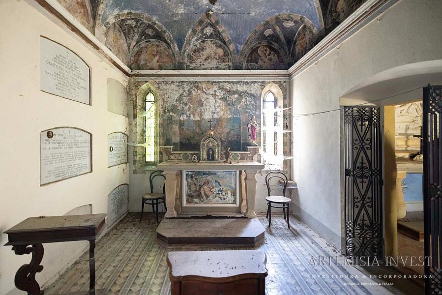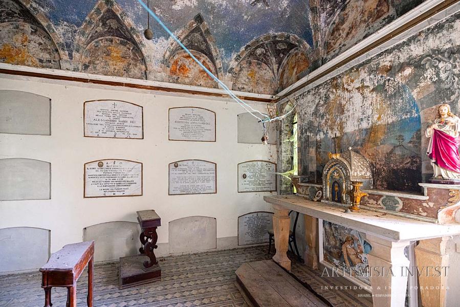 A capela privada (62 m²) está localizada a poucos passos da vila e conta com três salas decoradas com belos afrescos, altares originais e um elegante piso de mármore em mosaico. O edifício requer recuperação e restauração.