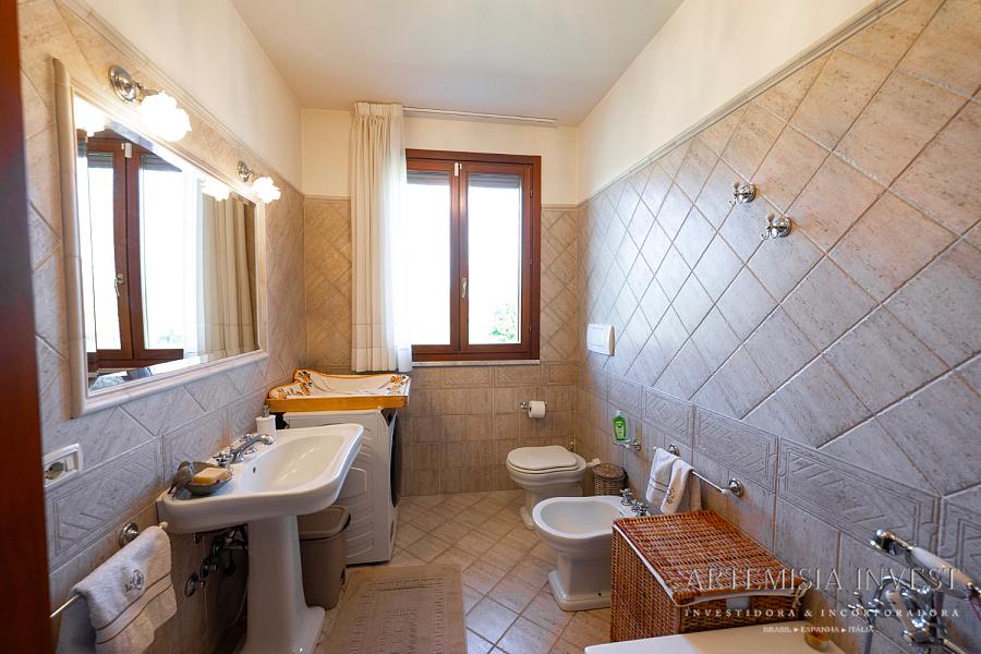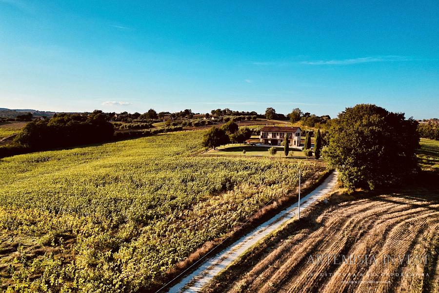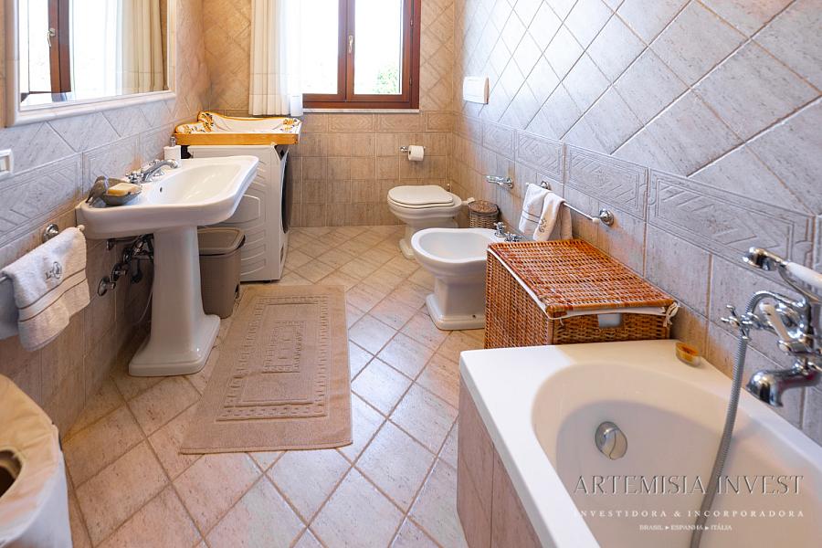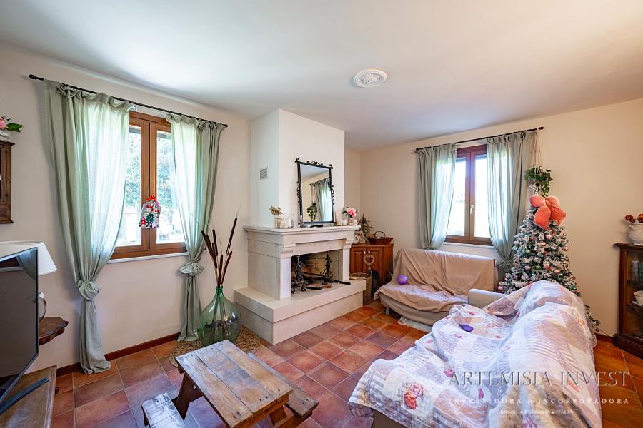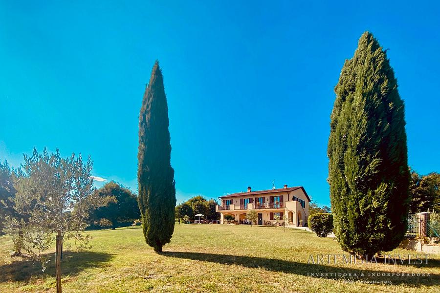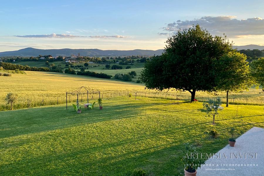 A propriedade inclui um amplo jardim cercado de 5.050 m², com aproximadamente 30 oliveiras em produção e árvores frutíferas, incluindo exemplares raros de Quercus Frainetto. O sistema de iluminação permite desfrutar do jardim também à noite, enquanto o sistema de irrigação mantém a grama sempre verde e bem cuidada ao longo do ano.