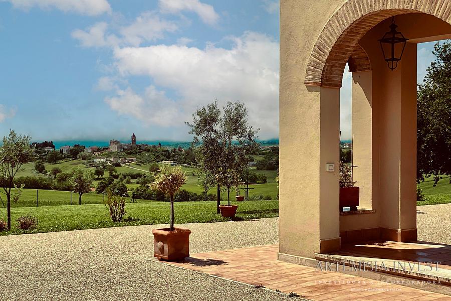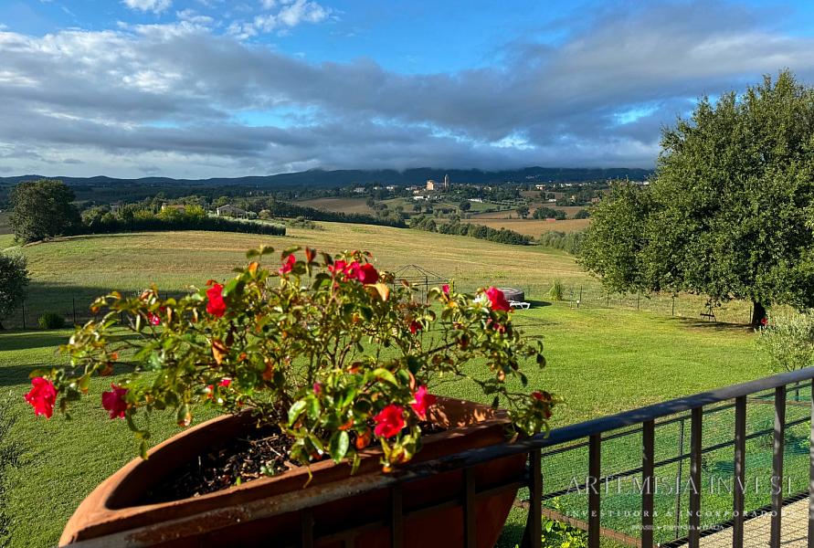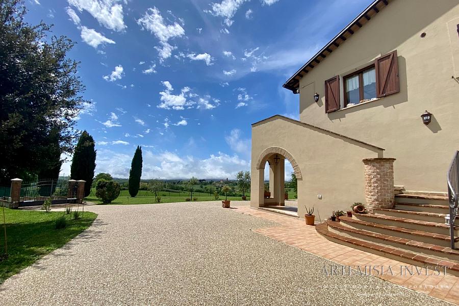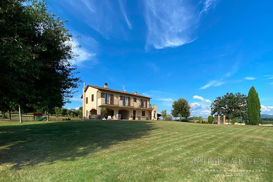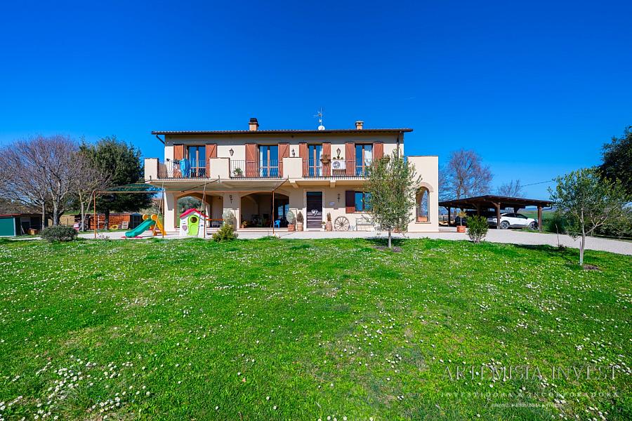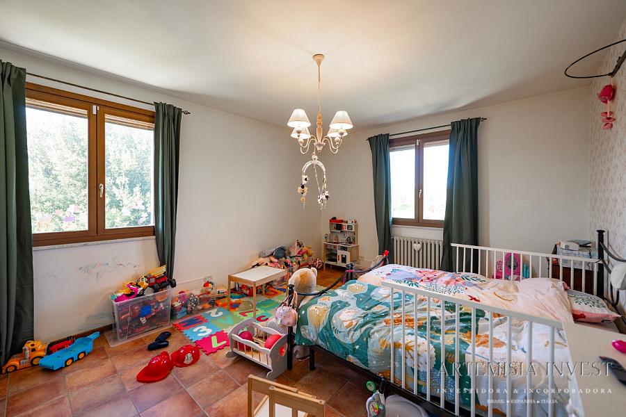 A propriedade inclui um amplo jardim cercado de 5.050 m², com aproximadamente 30 oliveiras em produção e árvores frutíferas, incluindo exemplares raros de Quercus Frainetto. O sistema de iluminação permite desfrutar do jardim também à noite, enquanto o sistema de irrigação mantém a grama sempre verde e bem cuidada ao longo do ano.