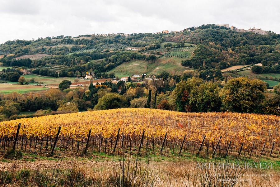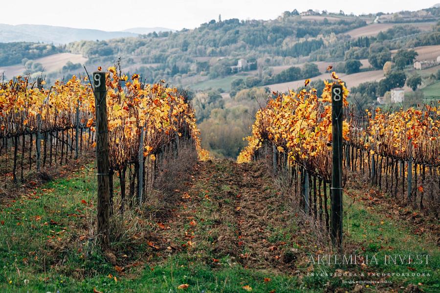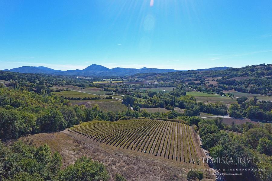 Nas colinas da Úmbria, não muito longe da fronteira com a Toscana, vende-se uma vinícola orgânica. A propriedade inclui 4,5 ha de vinha IGT (com potencial de produção de 95.000 garrafas de vinho por ano), 878 oliveiras e uma floresta com 2,0 ha de floresta de trufas. Ao nível do edifício encontramos o centro de empresa (700 m²) e uma quinta para remodelar (480 m²), bem como o projecto para construção de uma adega de vinificação.