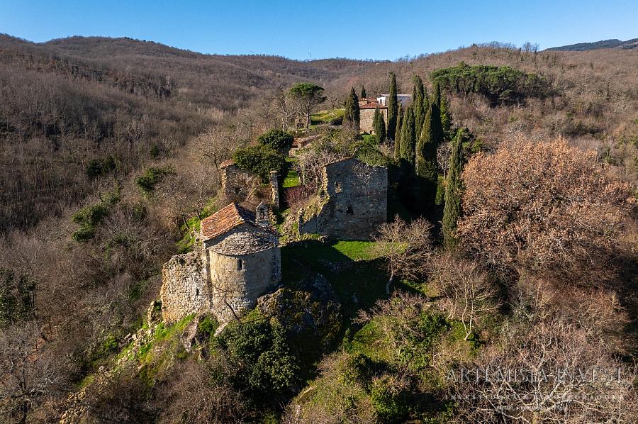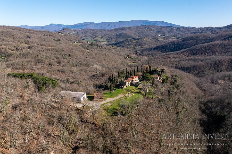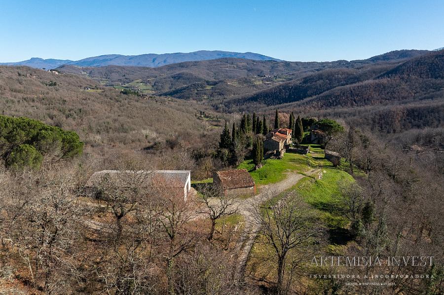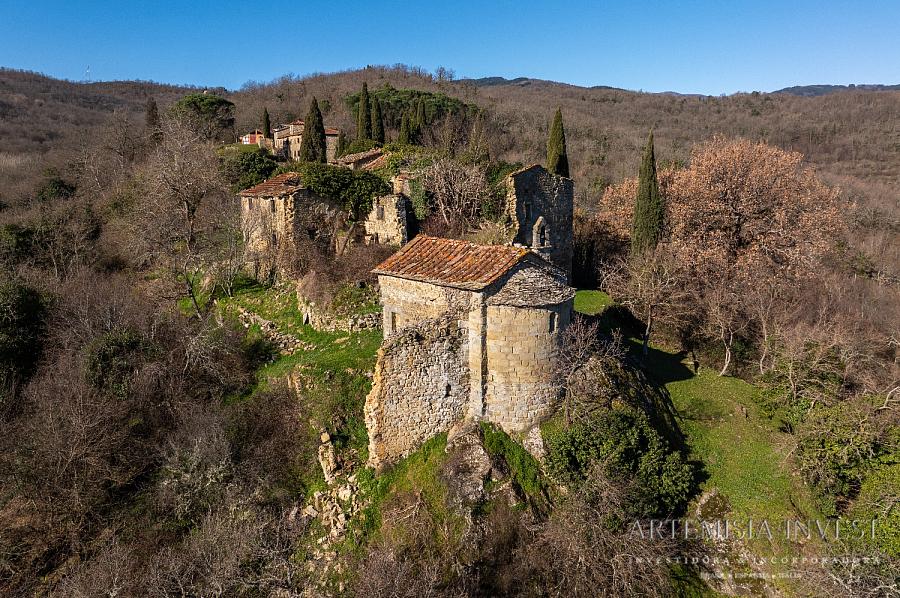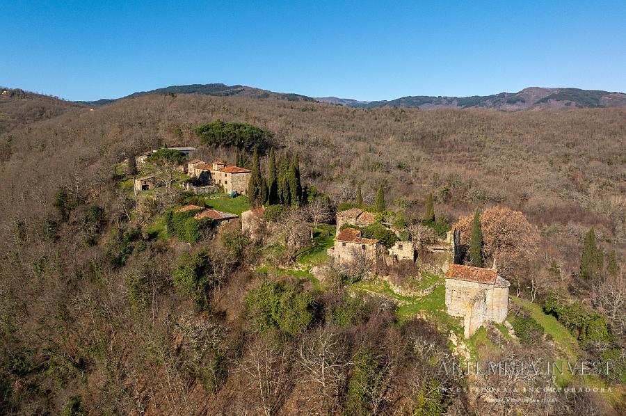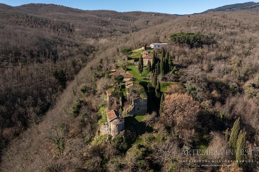 Em uma posição panorâmica e tranquila nas montanhas do Casentino, não muito longe de Talla, encontra-se um vilarejo rural para restaurar, com 112,2 hectares de terra à venda. Os edifícios estão situados sobre um esporão rochoso, na confluência de dois riachos, e o núcleo original do povoado provavelmente remonta ao século VII, quando foi construída a igrejinha: a região fazia parte dos domínios bizantinos, uma última extensão do chamado “corredor bizantino” que ligava Ravena a Roma. É evidente a influência grega na igreja. A estrada que sobe em direção à propriedade fazia parte dessa antiga via de comunicação que unia a Cassia Vetus (hoje Strada Setteponti) e a Flaminia Minor (posteriormente Via Romea, ao entrar na Emilia-Romagna). Da propriedade é possível avistar ao longe o Monte Penna, onde se ergue o eremitério franciscano de La Verna.